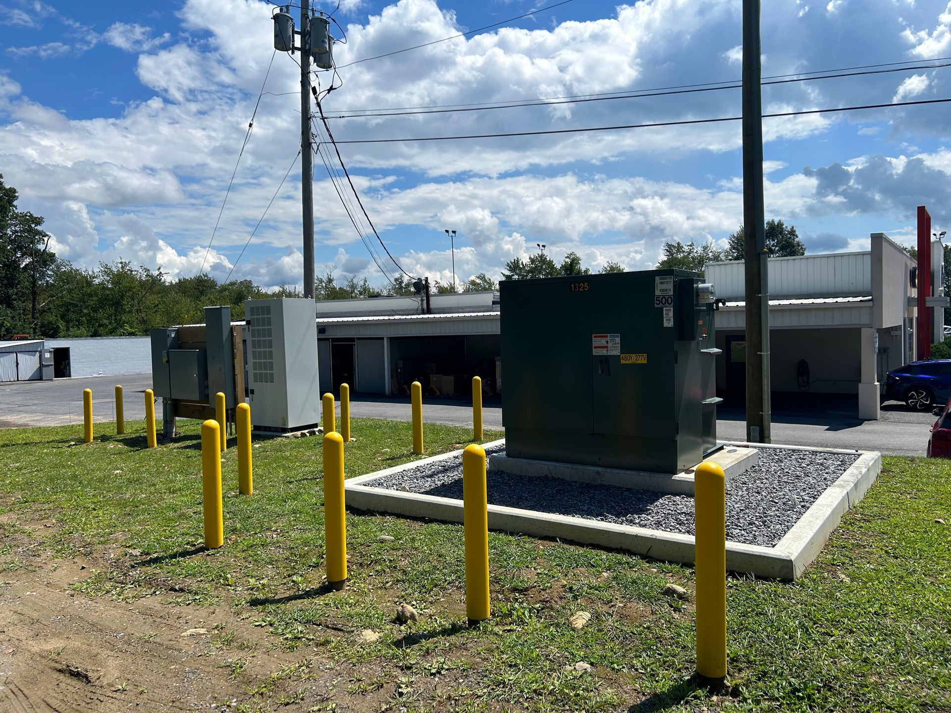 Big chargers need BIG power, and a brand new 480V service entrance and transformer. Garvey Kia's 350KW DC fast chargers are the first Electricy America chargers of this size to be installed in the USA.